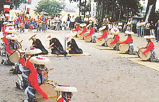太鼓踊りは、雷鳴に似た太鼓の音で神力を呼び覚ます、雨乞いの踊りとして日本各地に広く見られた。
