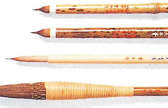 禁裏御用である雲平筆は、芯になる狸・イタチ・鹿などの獣毛を和紙で巻き固め、さらに上毛をかけて麻糸で締める「巻筆」の製法を400年近く伝えている。